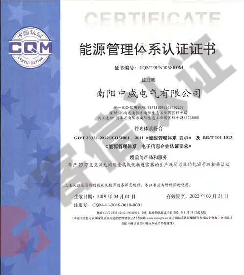 恭喜南陽中威電器有限公司獲取能源管理體系